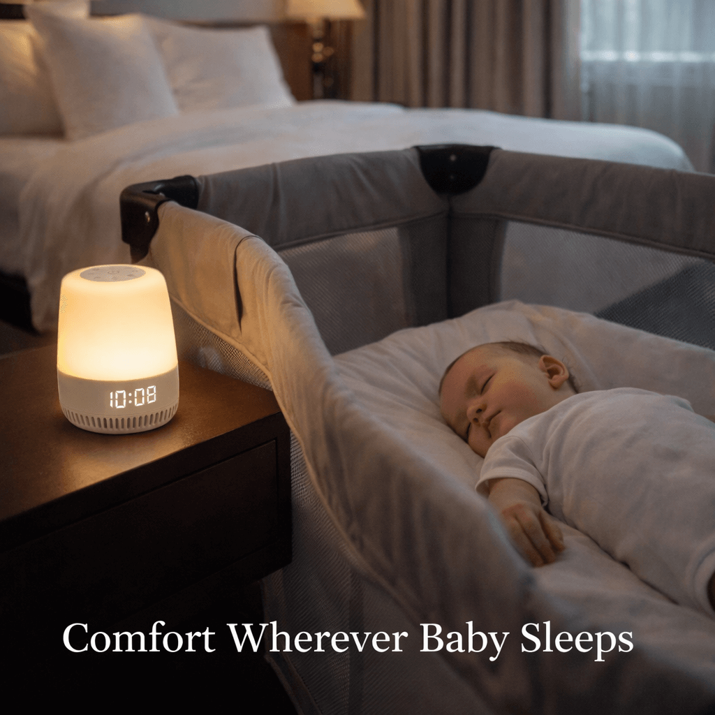 Yes. The compact, lightweight design and USB charging make it easy to move from room to room or take on trips. Parents often use it to recreate a familiar sleep environment wherever their baby sleeps.