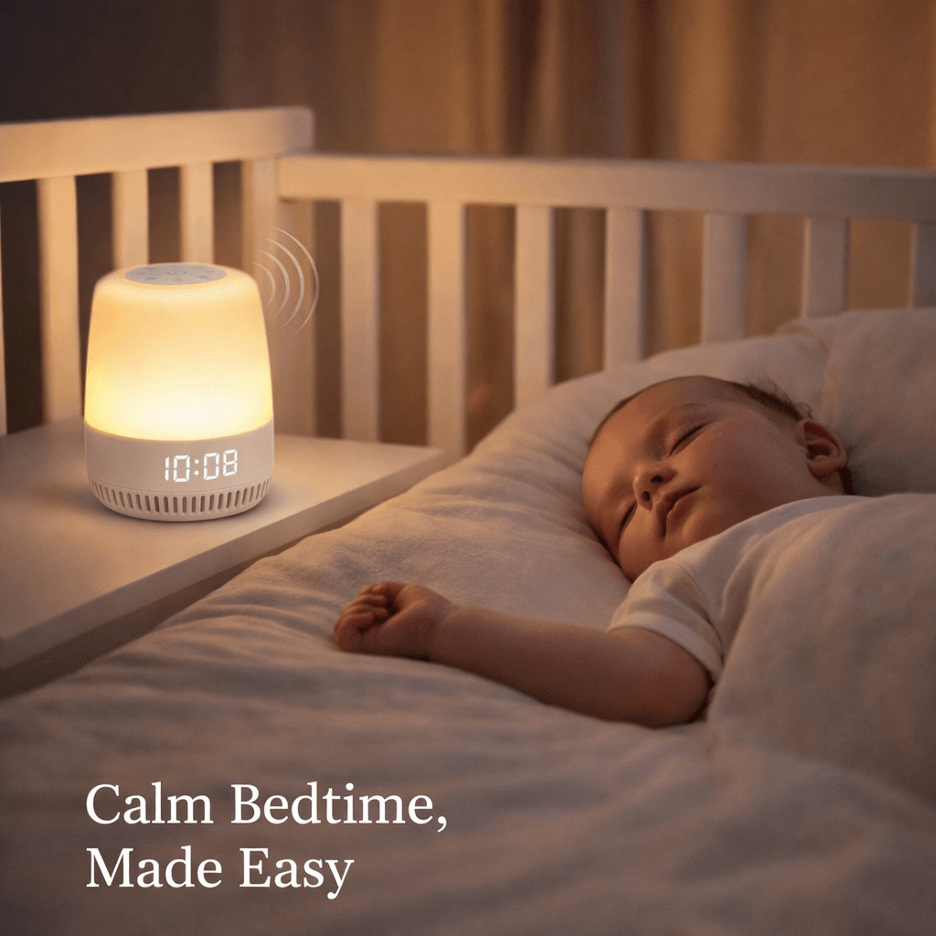 Overtired babies often fight sleep when the environment is too quiet or too stimulating. The steady white noise helps block sudden sounds and signals it’s time to rest. Parents report their babies falling asleep much more easily from the very first use.
